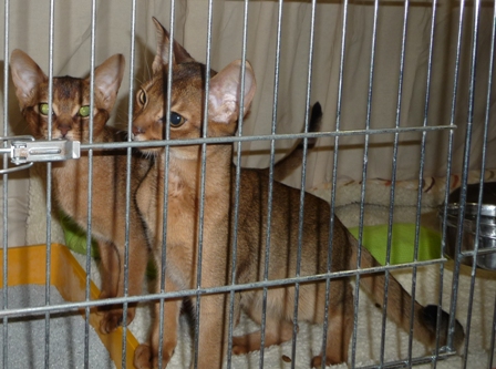 Abyssinerhunnkatten (Pearl) til mine abyssinervenner Anna og Micke i utstillingsburet sitt:)