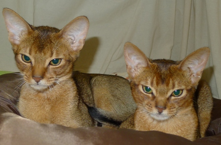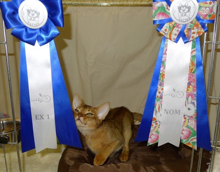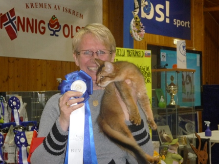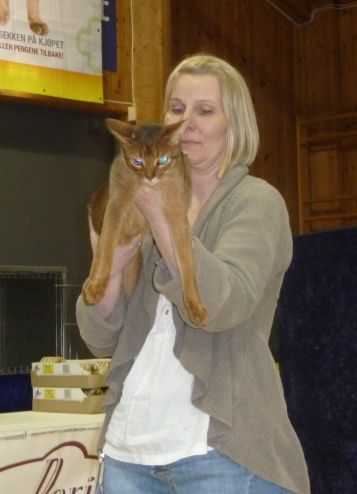 Min abyssinerkollega Kate med sin kjempefine abyssinerhannkatt Valentino som ble BiV (best i farge) av kattunger og ungdyr :)