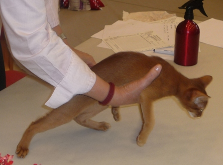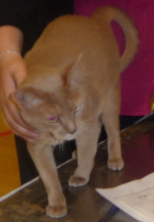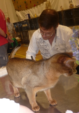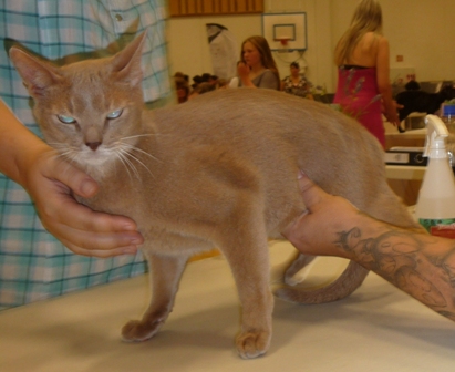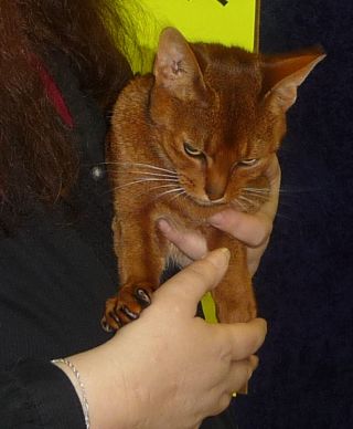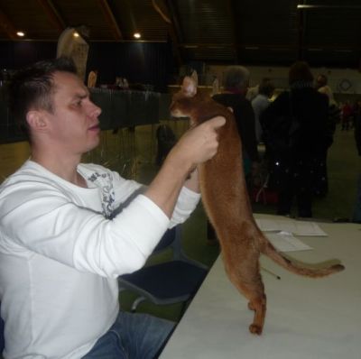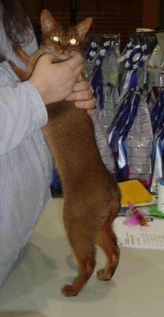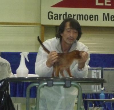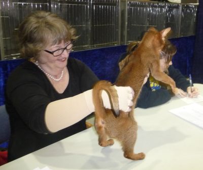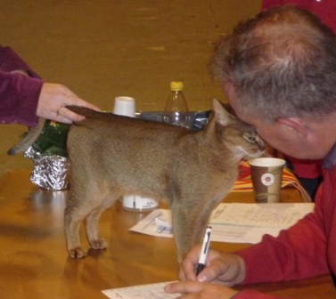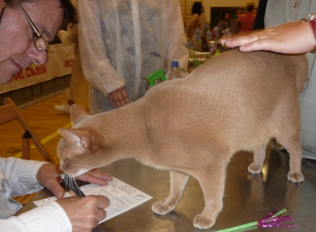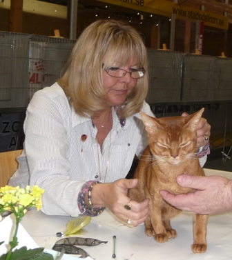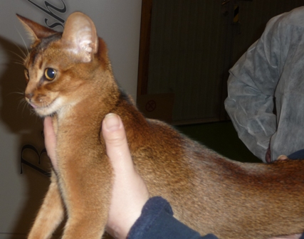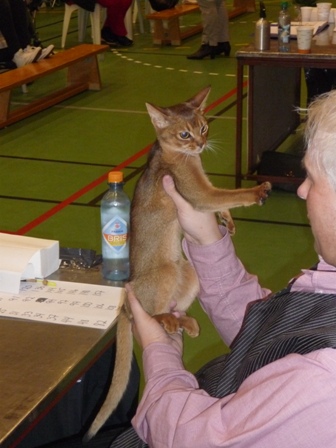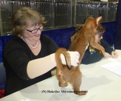 Abyssinerhannkatten Astrakan Gyllenkrok til sin grunnbedømmelse:)