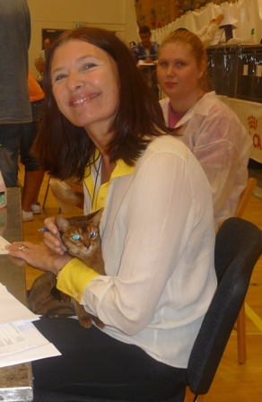 Dommer Thea som dømte de viltfargete abyssinerne gjør seg klar til å begynne med sin nominering til panel :)