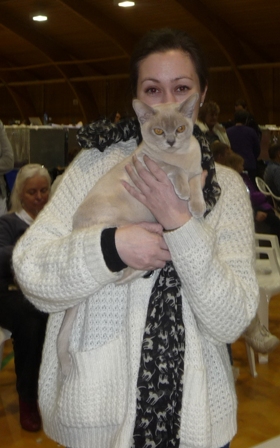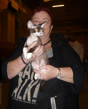 Agneta med den kjempefine siameserkatten sin som ble BIS:)