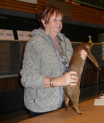 Svartfot huspus var også med på utstillingen:) Her slapper han av i utstillingsburet sitt:)