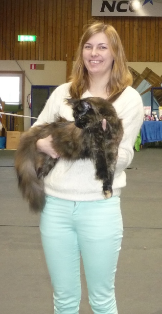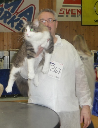 Maren Fillingsnes med den kjempefine 17 årige skogkatten Kanutten som ble Supreme Premier på Trønderkattens utstilling:)