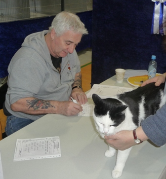 Christine (leder i katteklubben jeg er med i) jobbet som assistent under Vestkystkatten sin utstilling :)
