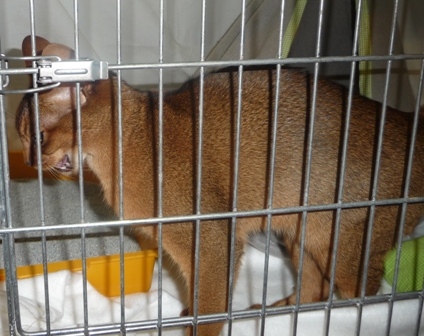 Den kjempefine abyssinerhannkatten (Jazz) til min abyssinervenninne May Britt i ustillingsburet sitt :)