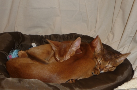 Min abyssinerkollega Solfrid med Shakira (halvsøster til Nadina) på fanget:)