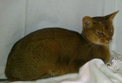 Abyssinerhunnkatten Elivza i utstillingsburet sitt:)