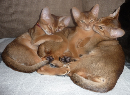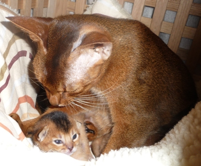 Familieidyll i fødekassen:) Topsy passer godt på Aros og Abyssa:)