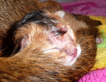 Aros og Abyssa i fødekassen første levedøgnet sitt:)