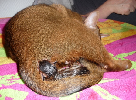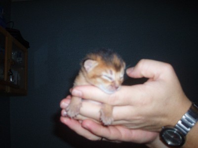 Førstefødte abyssinerhannkatten Caspar noen sekunder gammel!:)