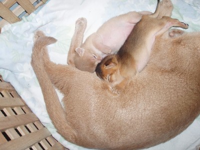 Aros og Abyssa 5 dager gamle. Godt å sove sammen mamma:)